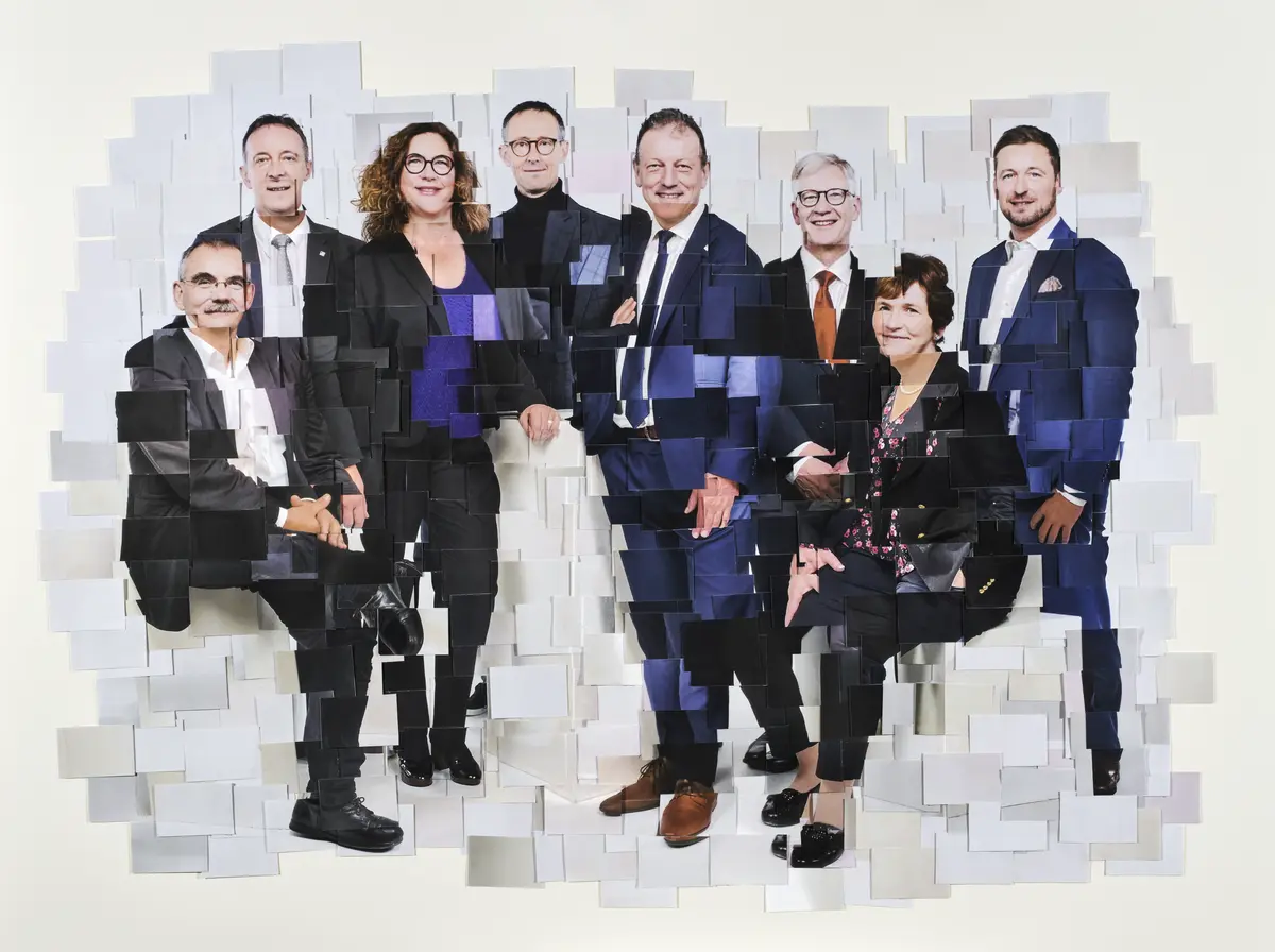 Collaboration pour réaliser la photo du gouvernement de l'état de Fribourg. Projet réaliser durant mon stage chez eikon LAB.